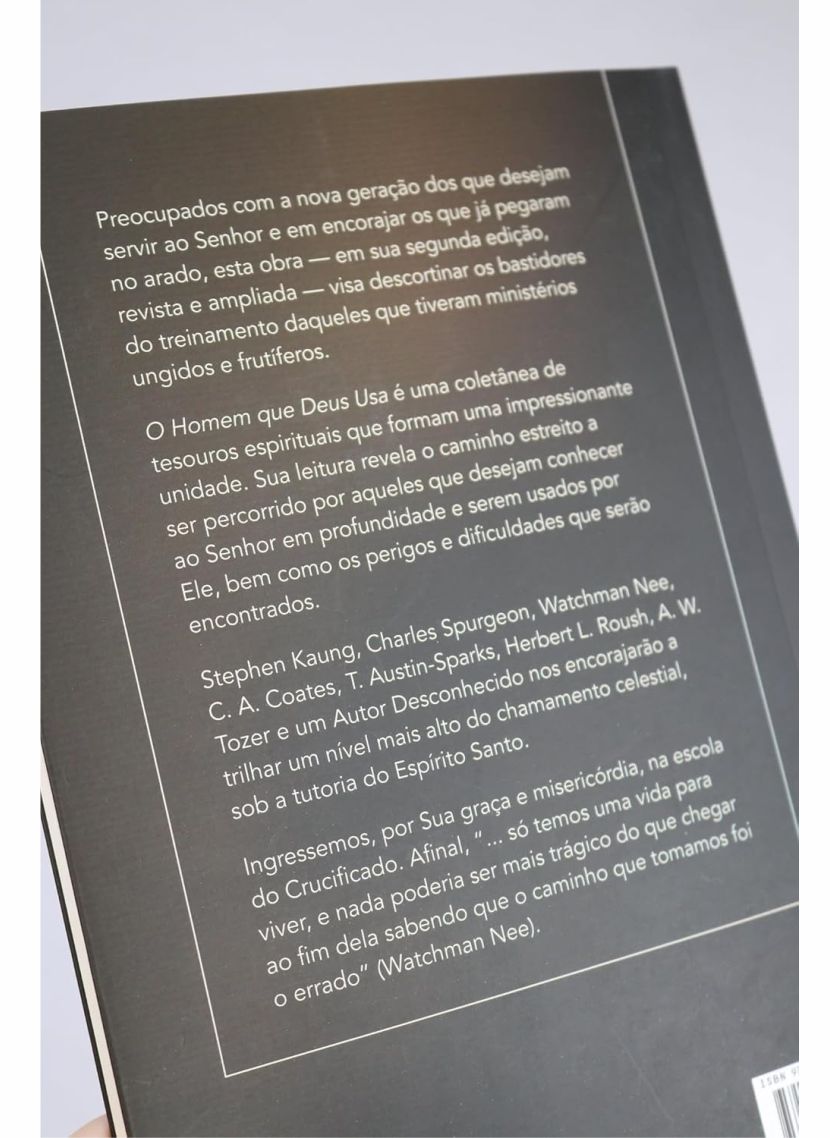 Preocupados com a nova geração dos que desejam servir ao Senhor e em encorajar os que já pegaram no arado, O homem que Deus usa visa descortinar os bastidores do treinamento daqueles que tiveram ministérios ungidos e frutíferos. Esta obra é um tesouro espiritual fornecido por renomados escritores cristãos.